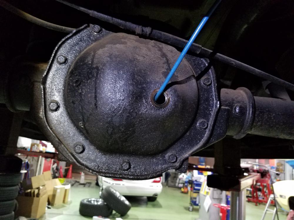 この透明のチューブを通る黒いオイルがデフオイルです。