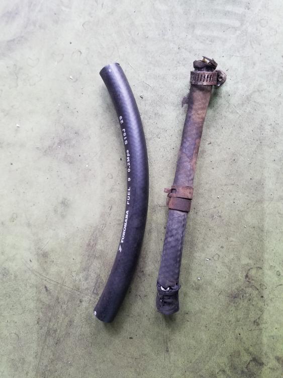 お預かり中にフューエルタンクからのホースからガソリンが漏れだしました。
