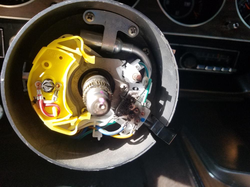 別件でウインカーレバーがぐらぐらで、ウインカーが出せない状態とのオーナー様の指摘があり、ステアリングコラムを分解してみました。。