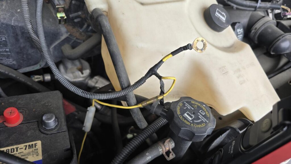 車両のバッテリーのプラス端子に“直付け”された電源線でした。