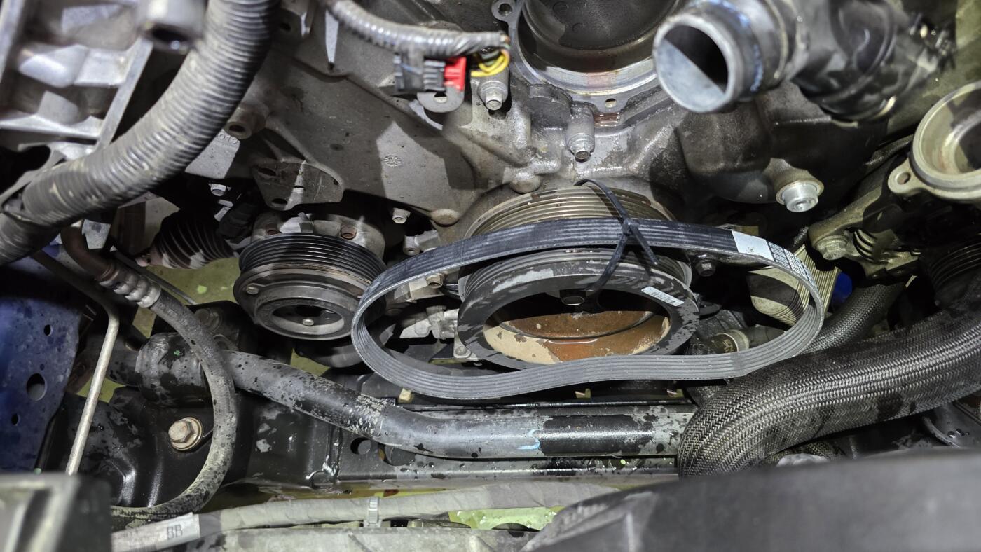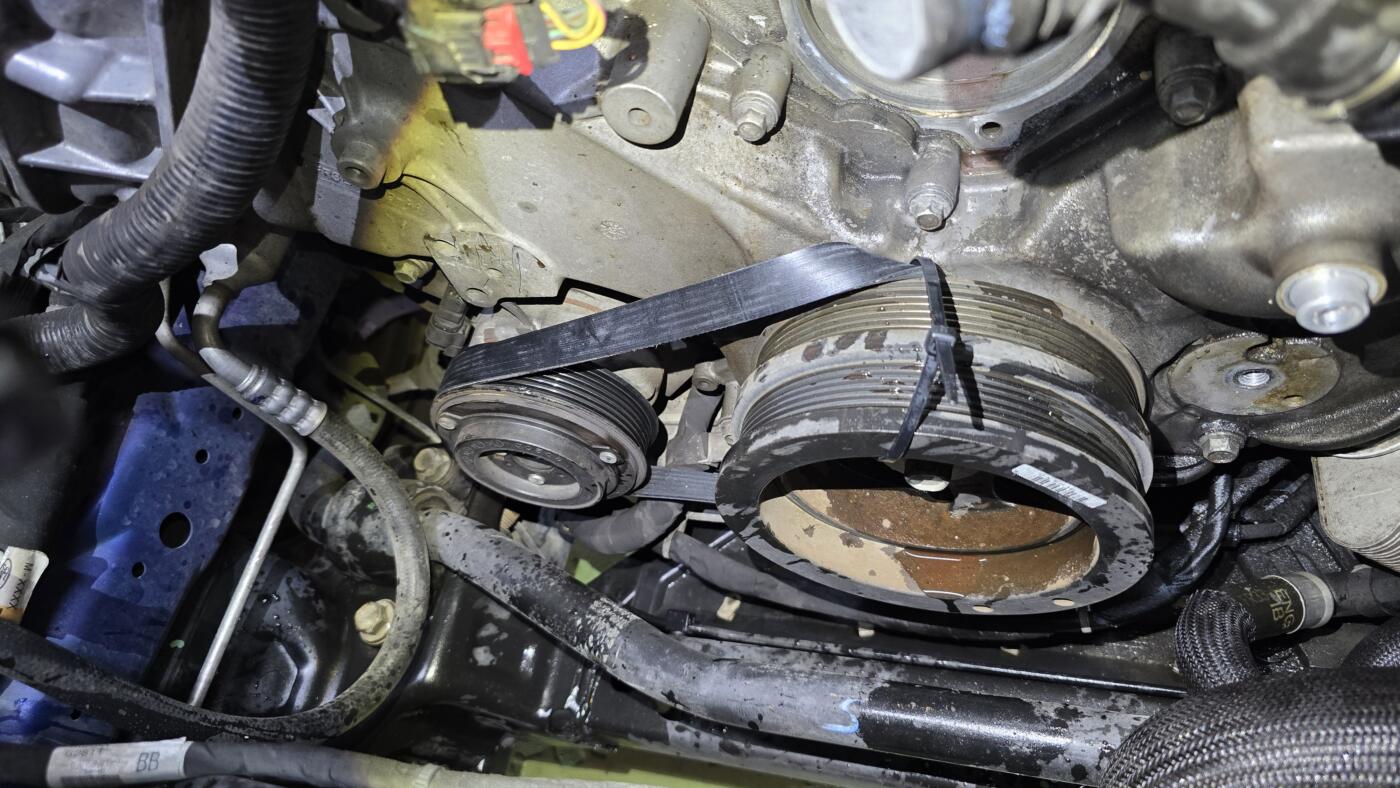 マスタングACコンプレッサーの負荷が多いのかは分かりませんが、そのストレッチベルトはテンショナーを使わない為に、専用工具がないと交換が難しいベルトです🔧