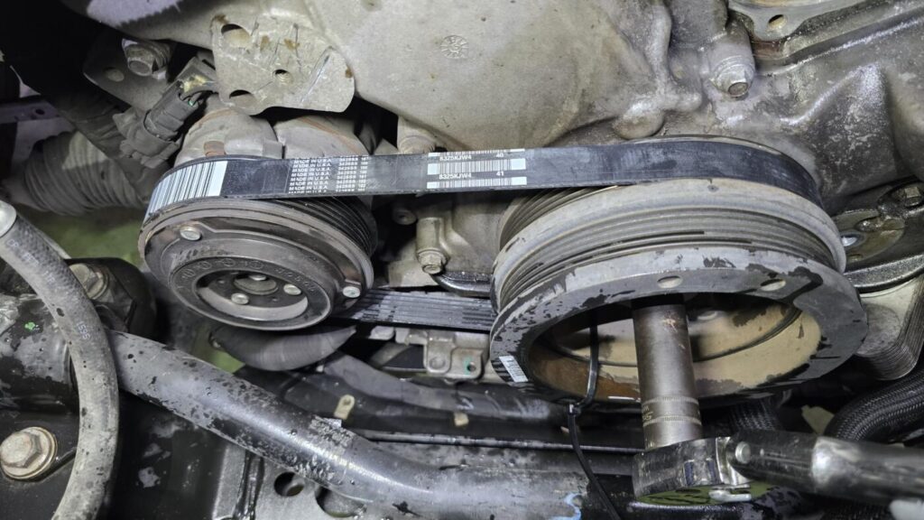 走行距離からエアコンベルトも同時交換する予防整備です。