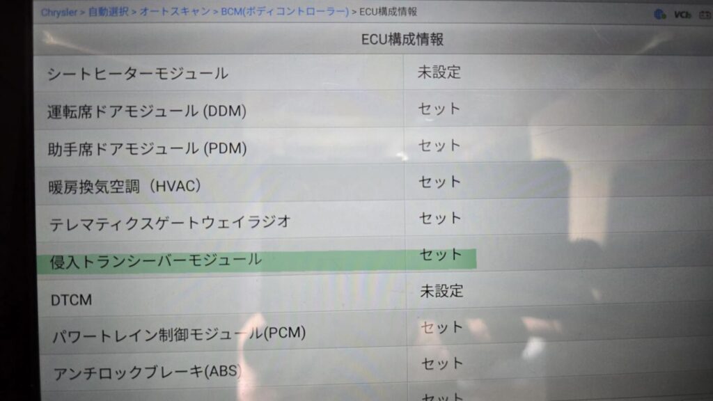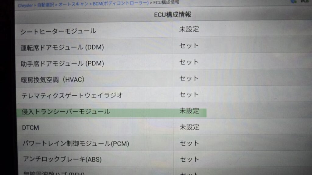 それましたが、上の画像でボディーコントロールモジュールのECU構成情報を見れば、侵入トランシーバーモジュールがセットになってます。